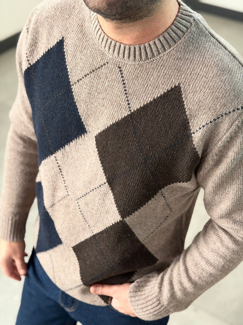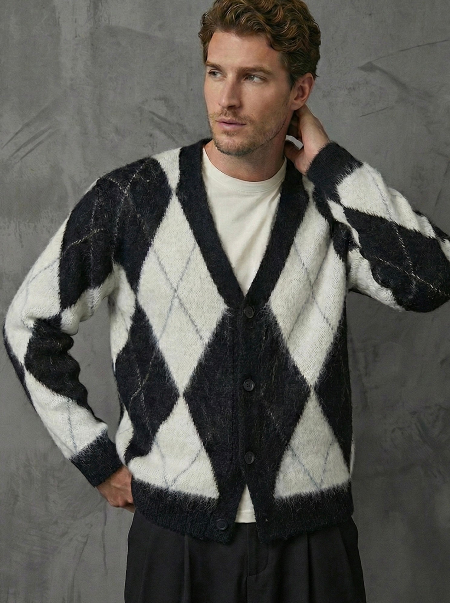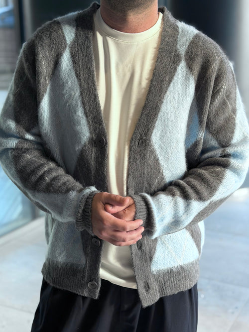 Erkek Baklava Desenli Hırka - Mavi Gri - HRK01