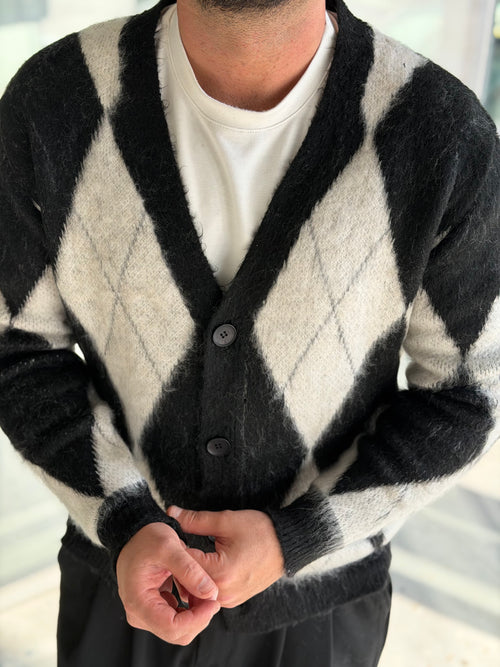 Erkek Yarım Oversize Triko Hırka - Siyah HRK20 -